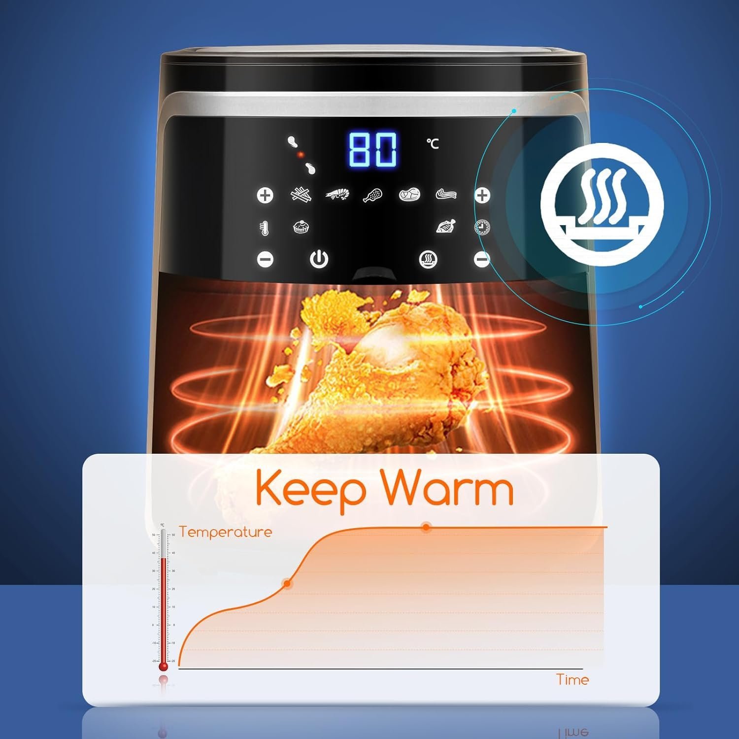 Potencia alta de 1900W, reduce el tiempo de cocci¨®n en comparaci¨®n con otras freidoras de aire