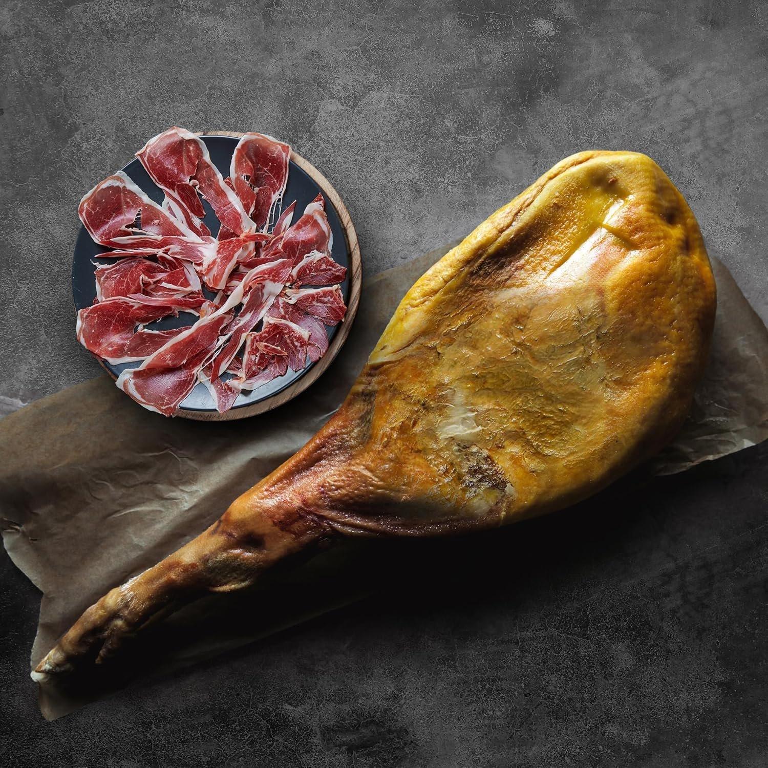 El jam¨®n cocido es jugoso y con un sabor aut¨¦ntico espa?ol, y el cuchillo included es de excelente calidad para cortar lonchas finas f¨¢cilmente.